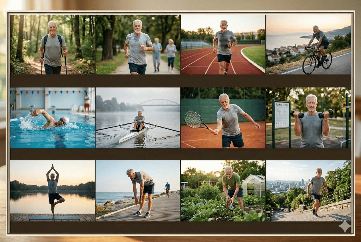 Resistance training is the highest-value addition for most retirees. Muscle mass decline accelerates from the mid-50s. Strength training – even two sessions of 20–30 minutes per week – preserves muscle, bone density, and metabolic function in ways no amount of cardio can replicate. Bodyweight exercises at home count.